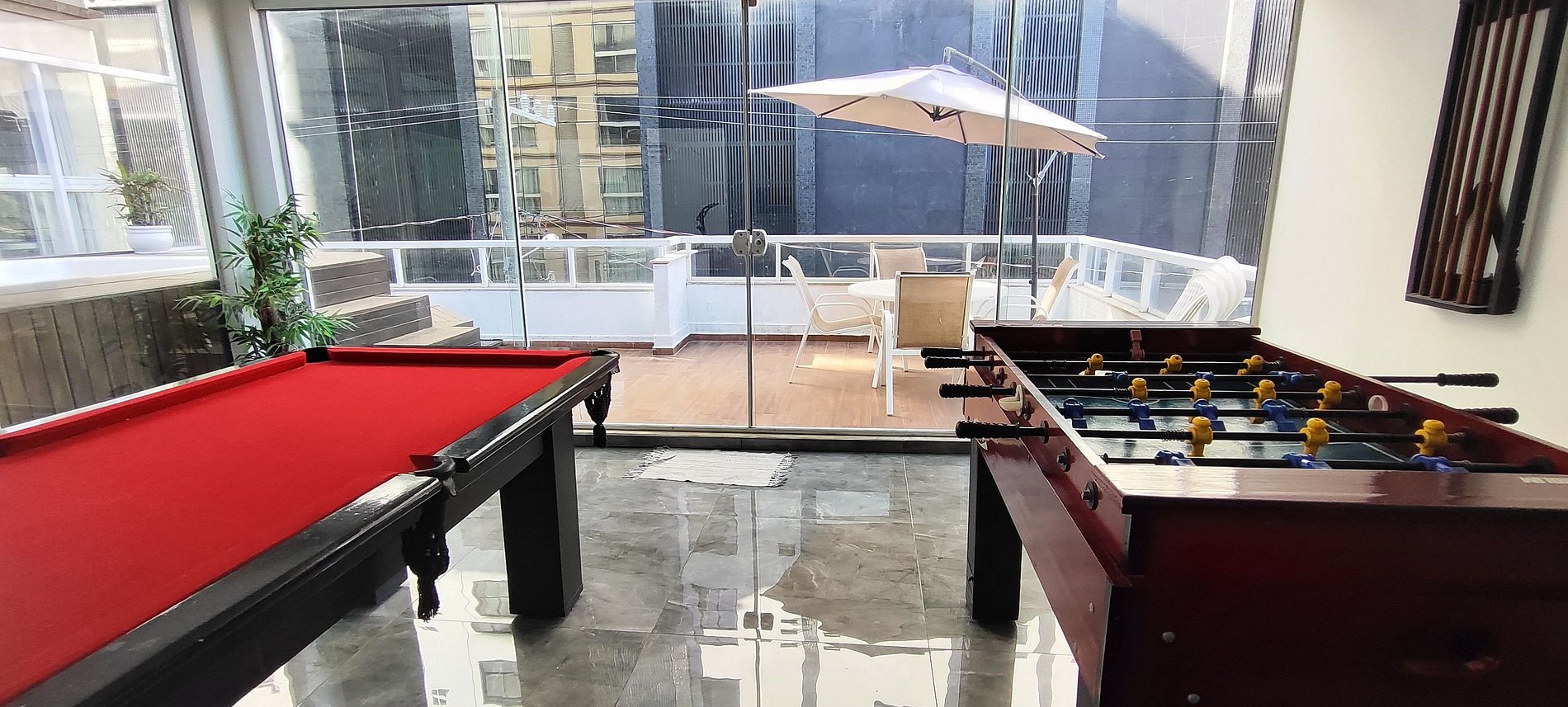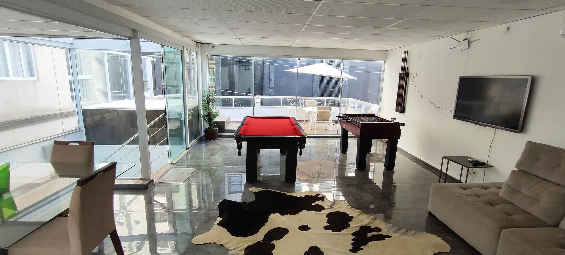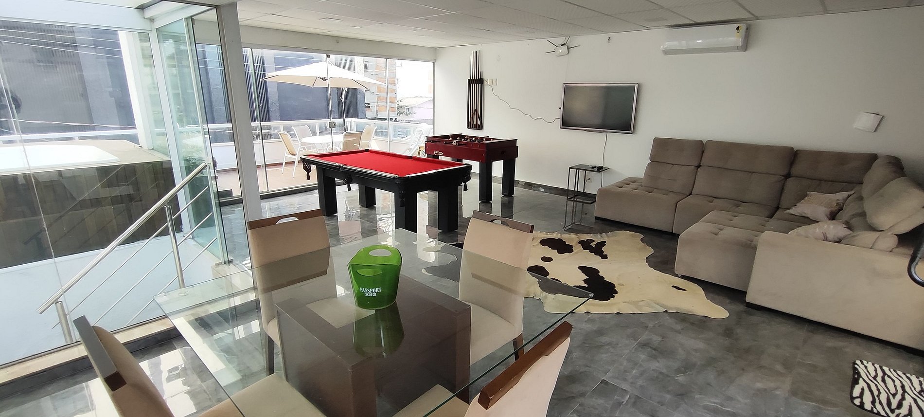 A cozinha totalmente equipada e a área gourmet oferecem praticidade para preparar suas refeições favoritas, enquanto o ar-condicionado e a internet Wi-Fi de alta velocidade garantem conforto e conectividade durante toda a estadia. Além disso, a localização privilegiada coloca você perto de restaurantes variados, supermercados, lavanderias, baladas animadas e parques encantadores para as crianças.