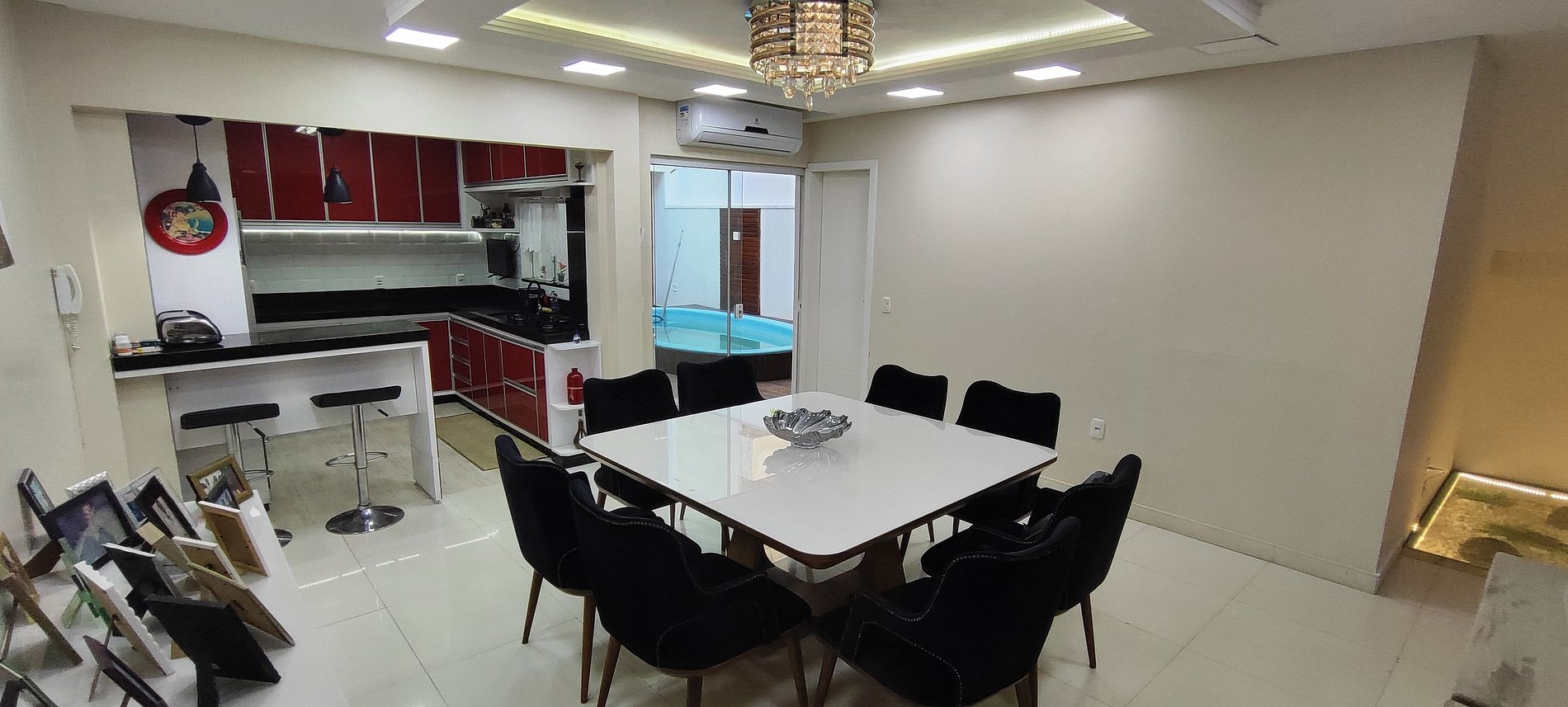 Casa espaçosa em rua calma perto da praia, perfeita para famílias! Com sinuca, pebolim, piscina, churrasqueira, banheira de hidromassagem e ofurô. Cozinha completa, área gourmet, ar-condicionado e Wi-Fi. Próxima a restaurantes, mercados, baladas e parques.