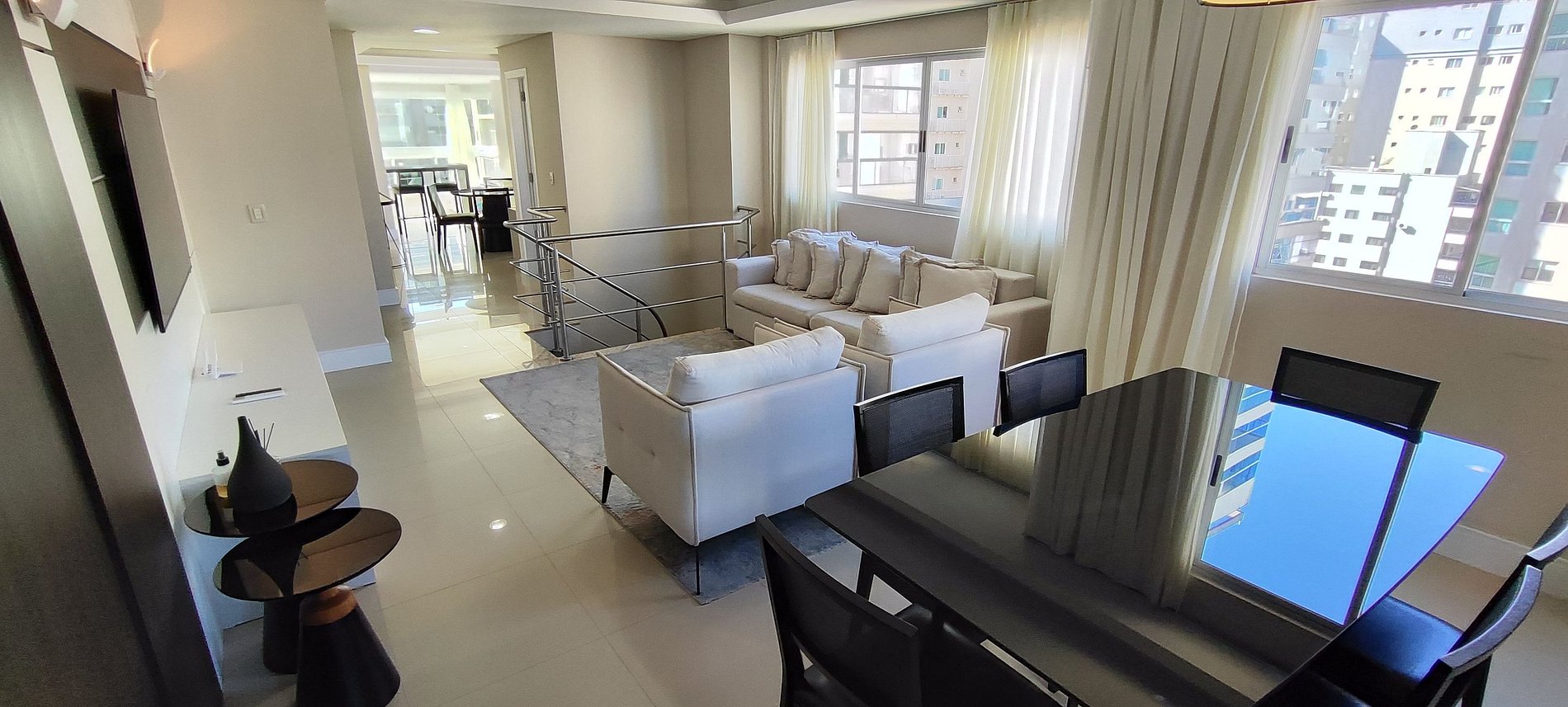 O duplex foi planejado para proporcionar conforto, privacidade e experiências marcantes. Área íntima com 3 suítes espaçosas e closet; área social com cozinha completa, sala de jantar, sala de estar e varanda com churrasqueira com vista mar. Decoração impecável, Smart TV de 75” para entretenimento premium e ambientes preparados para momentos inesquecíveis.