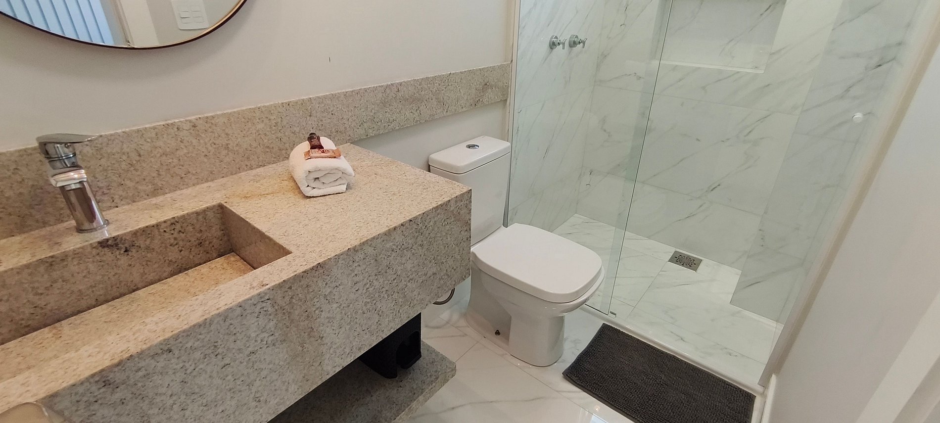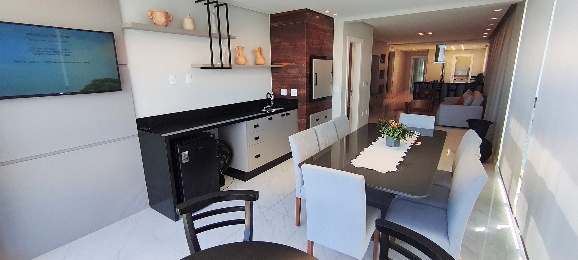 O apartamento foi planejado para conforto e convivência. São 3 suítes amplas, com destaque para a suíte principal com banheira de hidromassagem, ideal para relaxar após um dia de praia. A área social integra sala de estar com smart TV, espaço de jantar e cozinha gourmet completa, que se conecta à varanda com churrasqueira e vista para o mar, criando um ambiente perfeito para confraternizar em família ou com amigos.