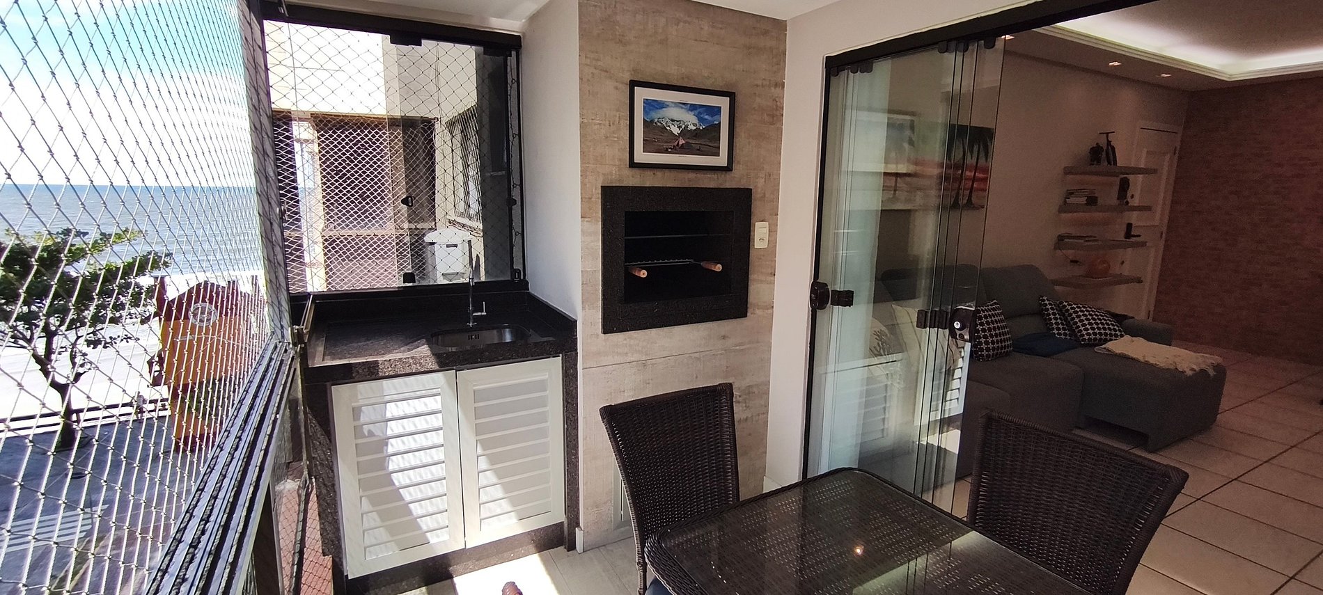 Conforto em frente ao mar, sacada e churrasqueira