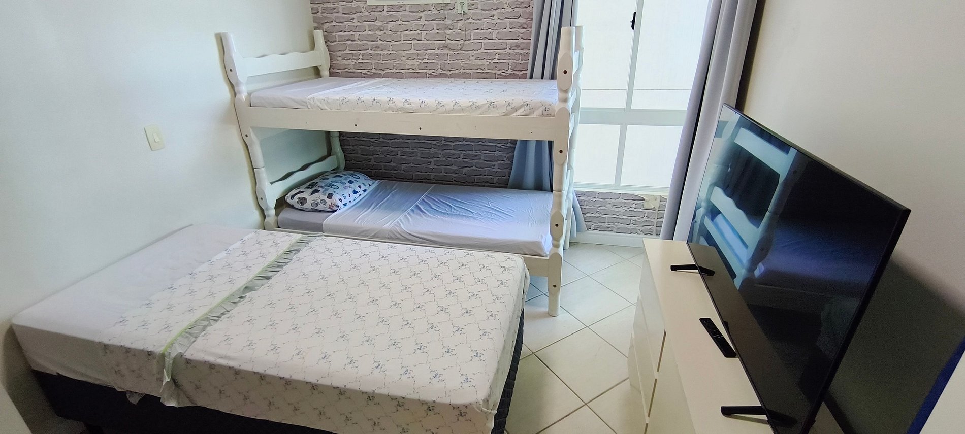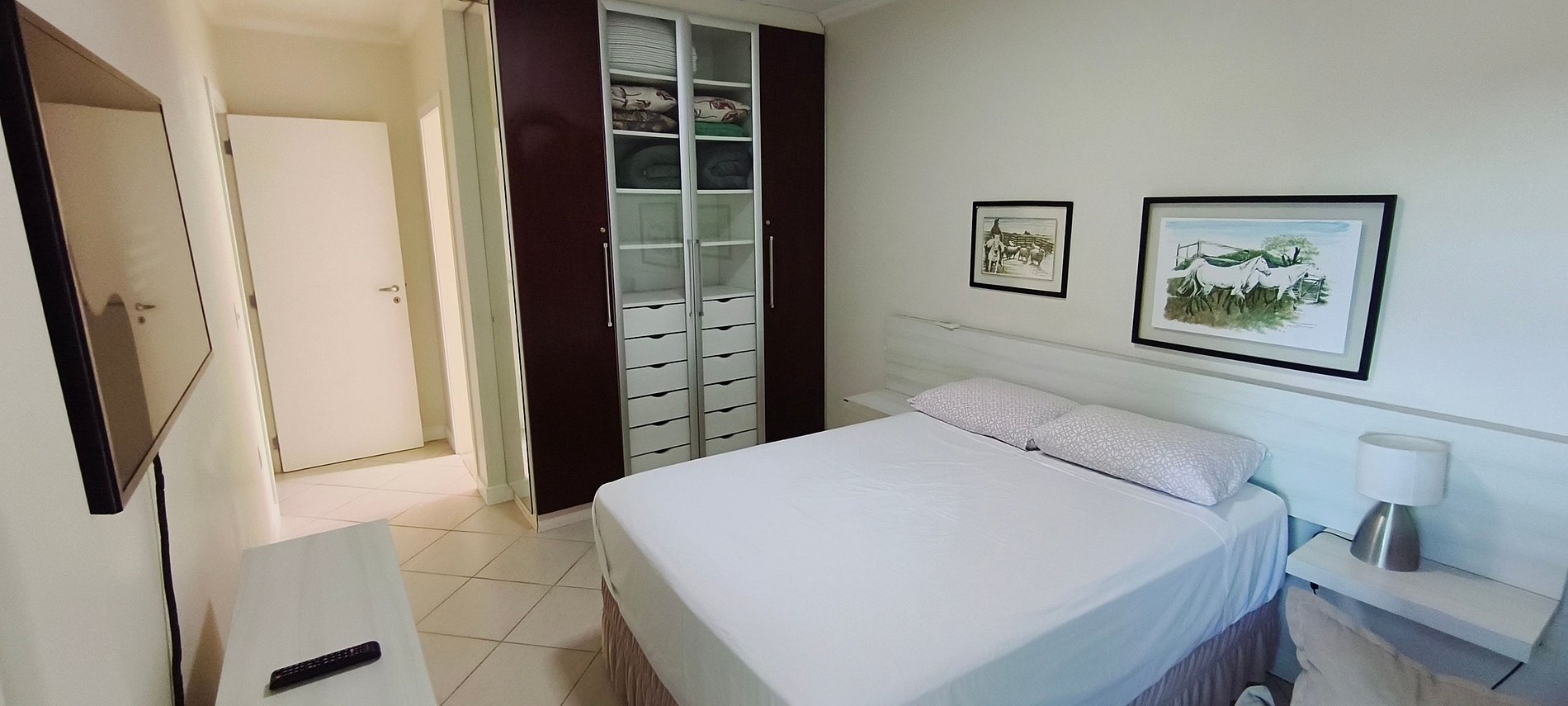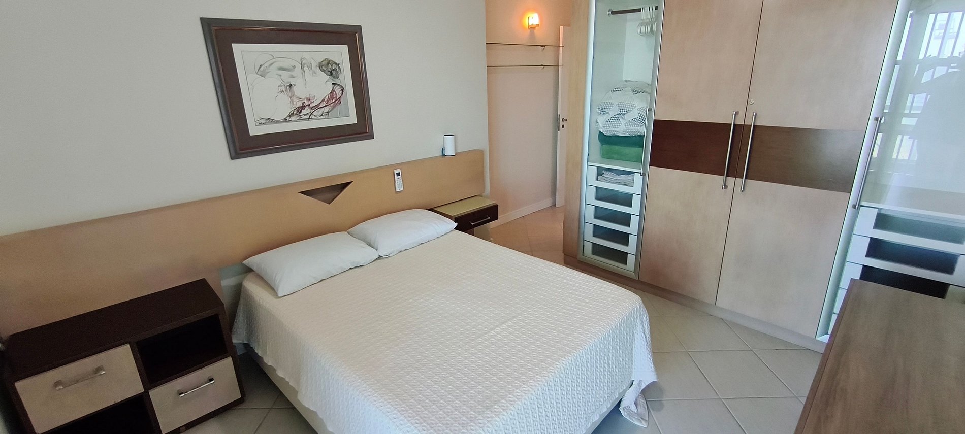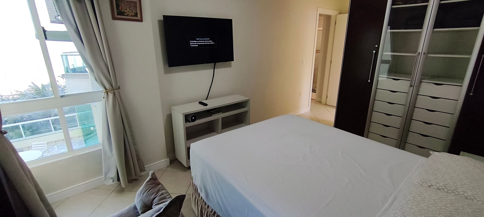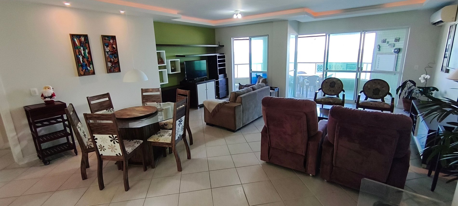 Os hóspedes têm acesso a todo o apartamento: quartos, suítes, sala integrada, cozinha, lavanderia e sacada com churrasqueira e vista mar.