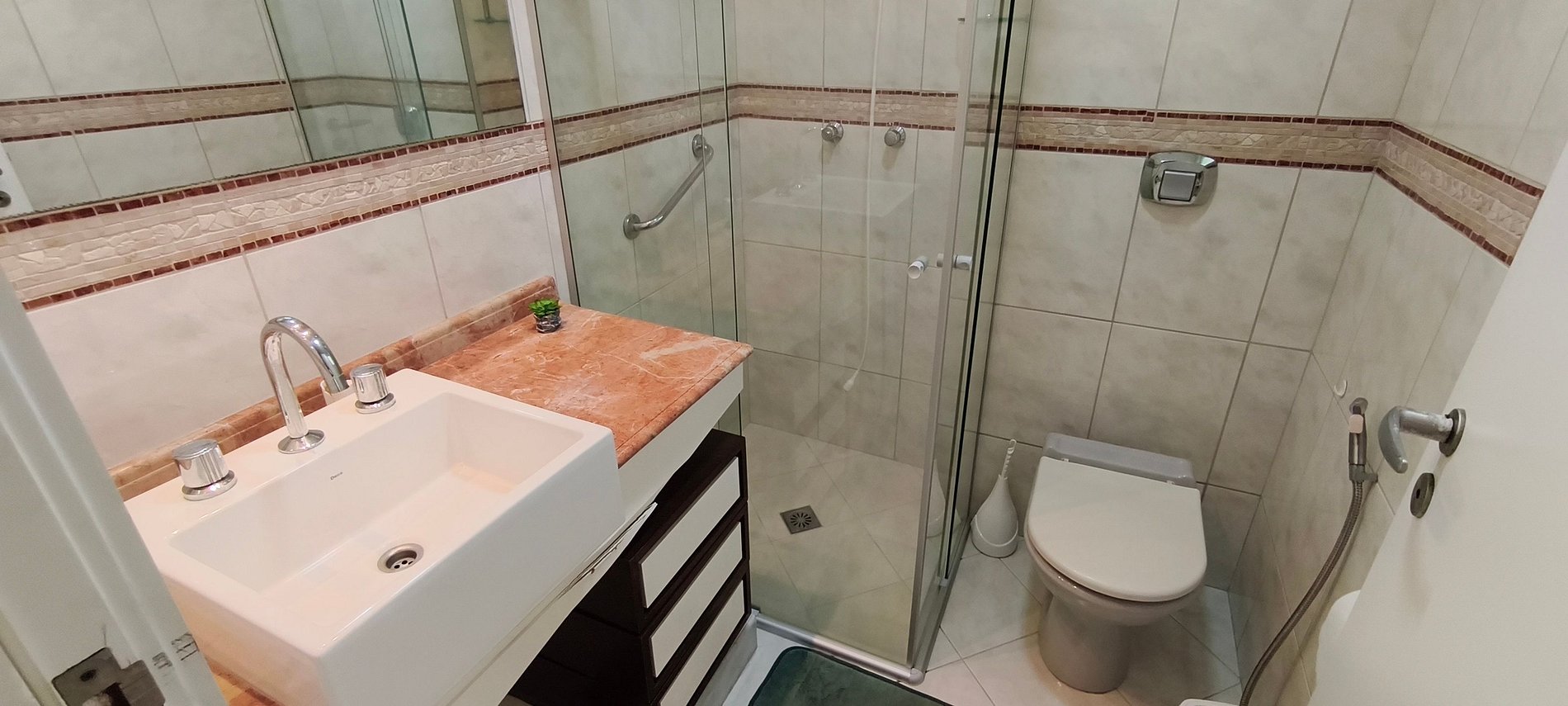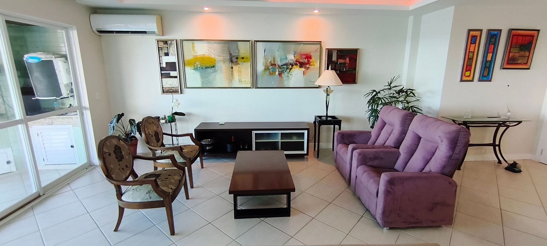 O apartamento foi pensado para quem valoriza amplitude e conexão com o mar: são 220 m² distribuídos em 3 quartos, sendo 2 suítes, todos com vista para o oceano.