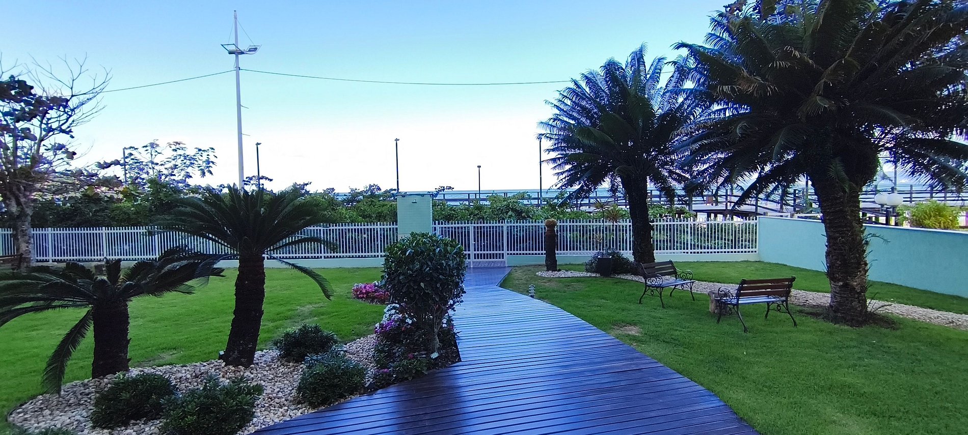 O condomínio Godo Stark se integra à natureza local, em um trecho de praia que combina mar, vegetação e calçadão, ideal para caminhadas e contemplação.