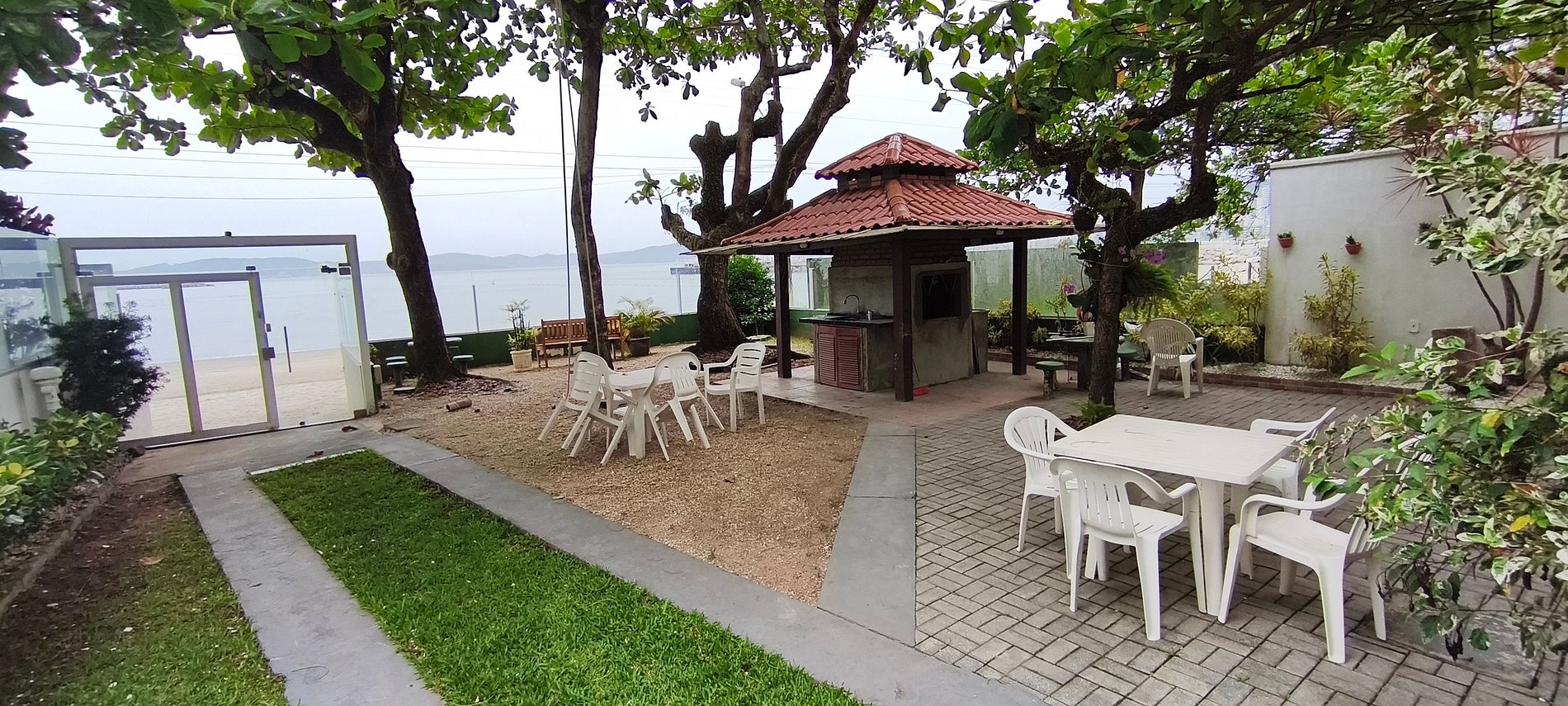Check-in assistido pela equipe da Itapema Beira Mar. Entrega de chaves (quando não há fechadura eletrônica) e tags de acesso ao prédio. Sem zeladoria 24h, mas acesso organizado e seguro. Condomínio com quintal que termina no mar, jardim para relaxar e espaço para churrasco.
