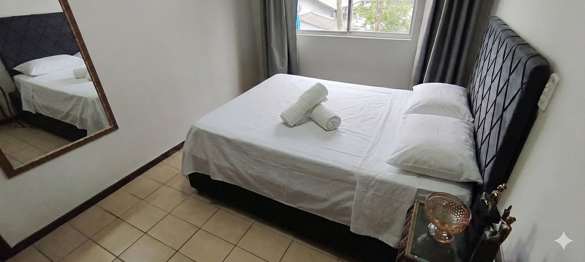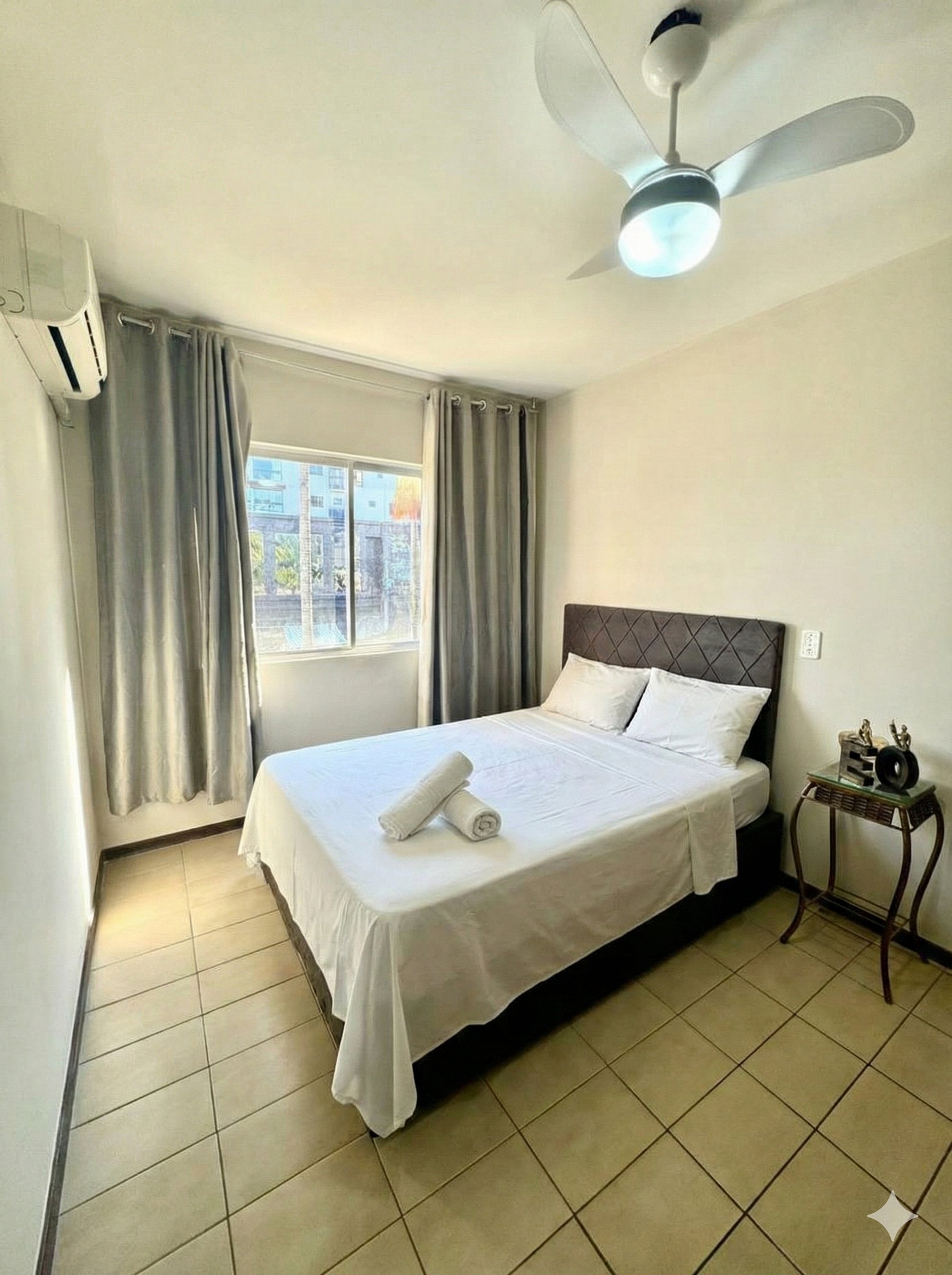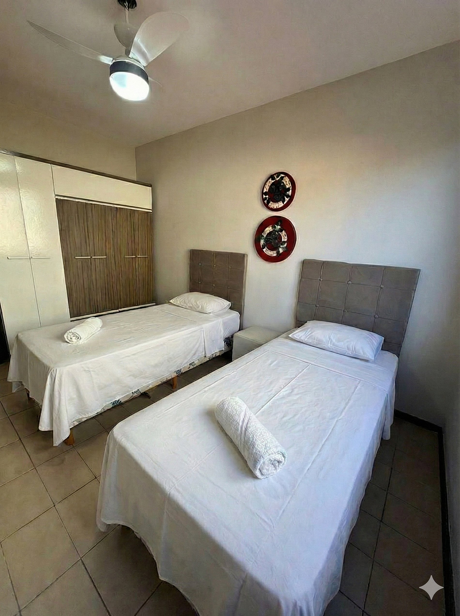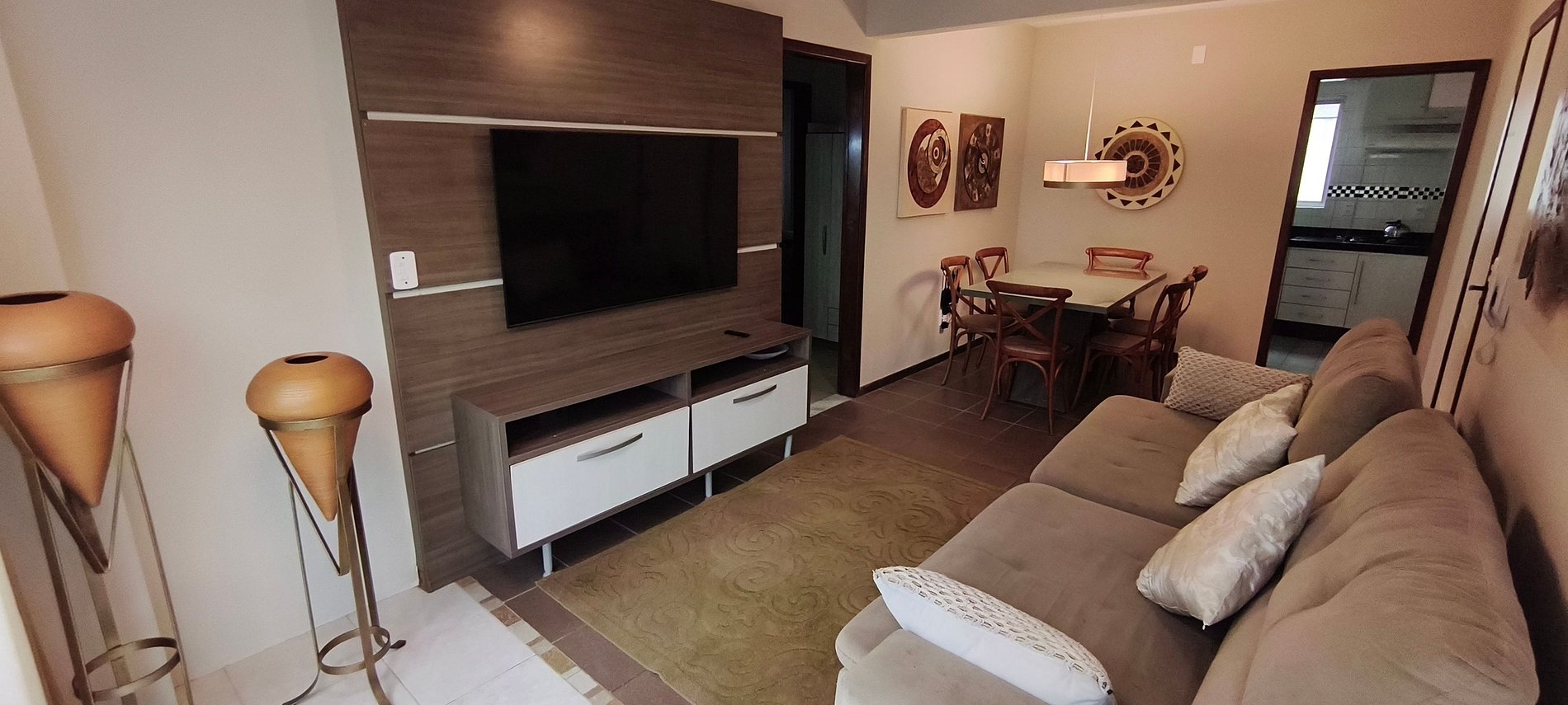 Pequeno, mas encantador, este apartamento é perfeito para quem busca um refúgio beira-mar com muito charme. 2 quartos: um com cama de casal e outro com duas camas de solteiro. Fornecemos colchões extras para acomodar mais hóspedes. Ambientes climatizados, enxoval completo, camas montadas e amenities (papel, sabonete, shampoo da Amazônia, detergente, bucha). Água de boas-vindas para tornar sua chegada ainda mais acolhedora.