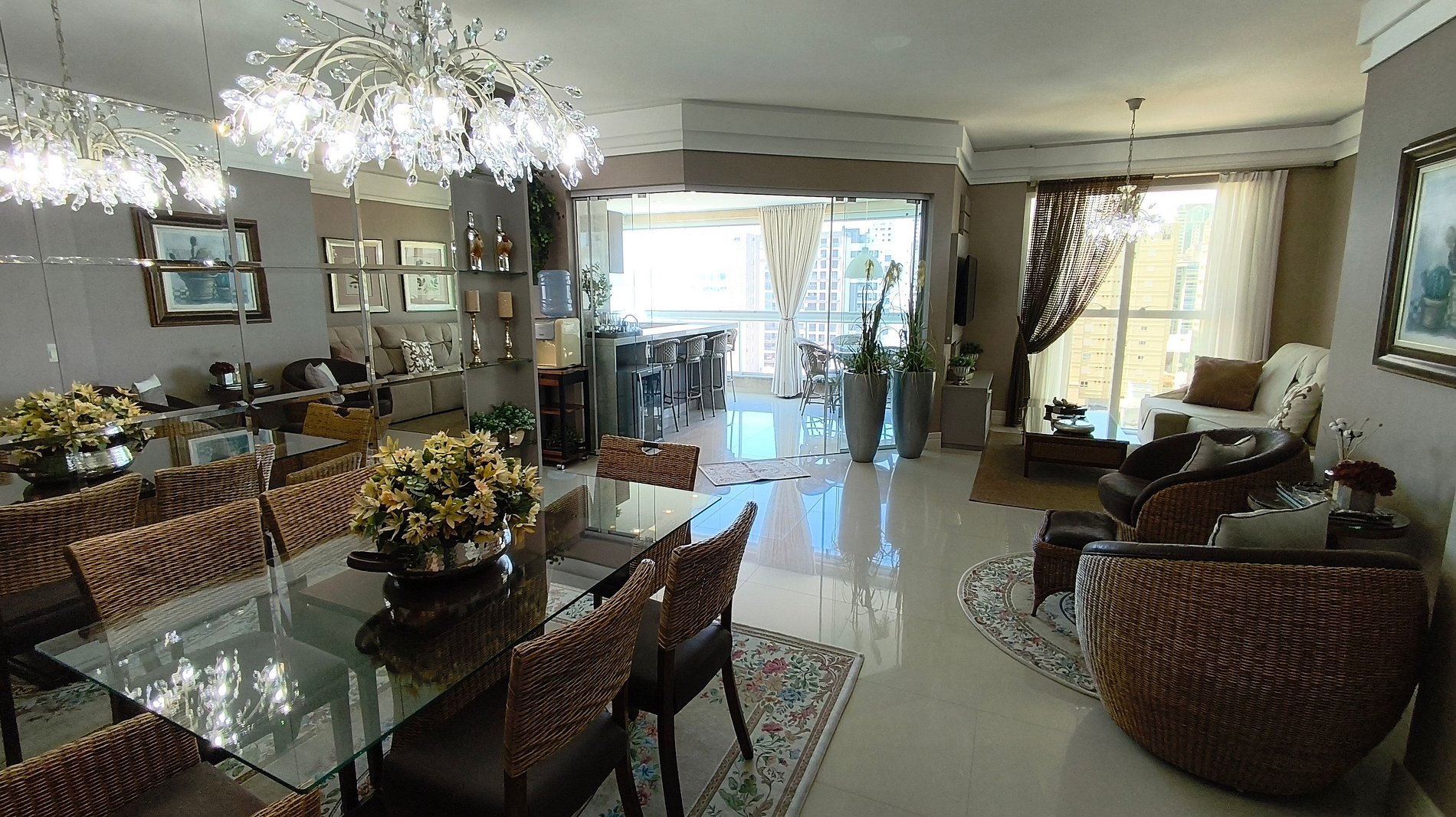 Ambiente sofisticado, frente-mar, com 3 suítes completas e vista panorâmica. Sala integrada à área gourmet, também com vista mar. Todos os ambientes são climatizados e contam com TV Led Smart, proporcionando conforto e entretenimento. Decoração moderna, enxoval de cama e banho fornecido, serviço concierge 24h com backup eletro e 3 vagas de garagem exclusivas. Ambiente climatizado, mobiliário moderno e preparado para receber sua família com praticidade e bem-estar.