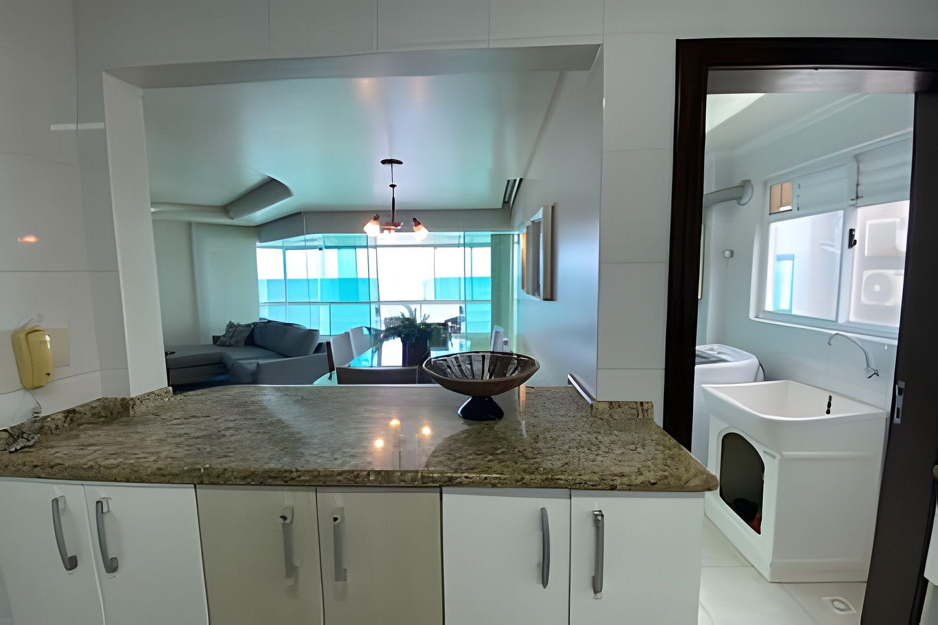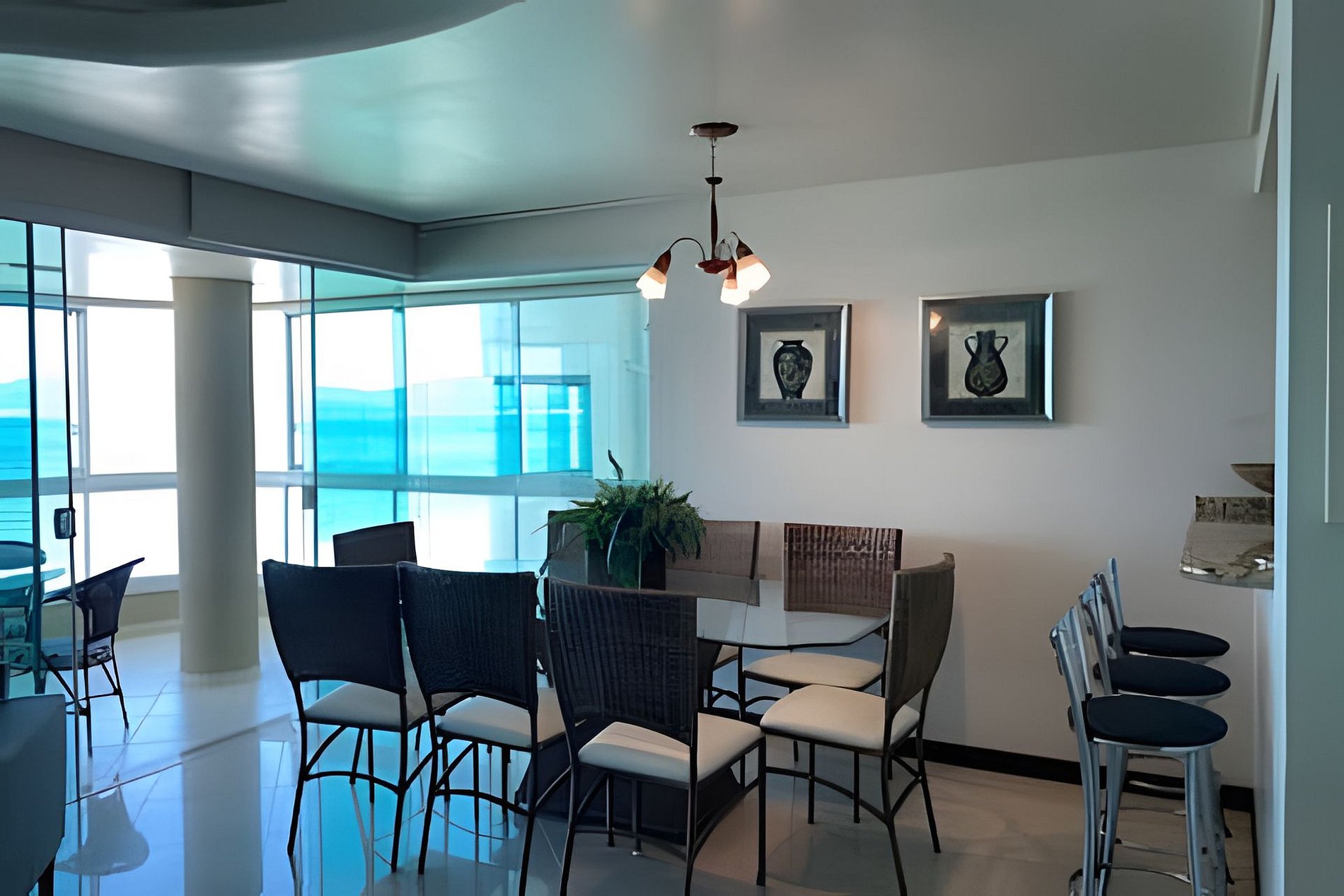 Apartamento amplo, frente-mar, com vista mar integral. 4 quartos sendo 2 suítes, todos climatizados e preparados para receber sua família com conforto. Sala ampla integrando jantar, churrasqueira e estar, cozinha completa com passa pratos, ambiente climatizado e 2 vagas de garagem. Ambiente moderno, mobiliário de qualidade e decoração pensada para aproveitar ao máximo a vista e o bem-estar.