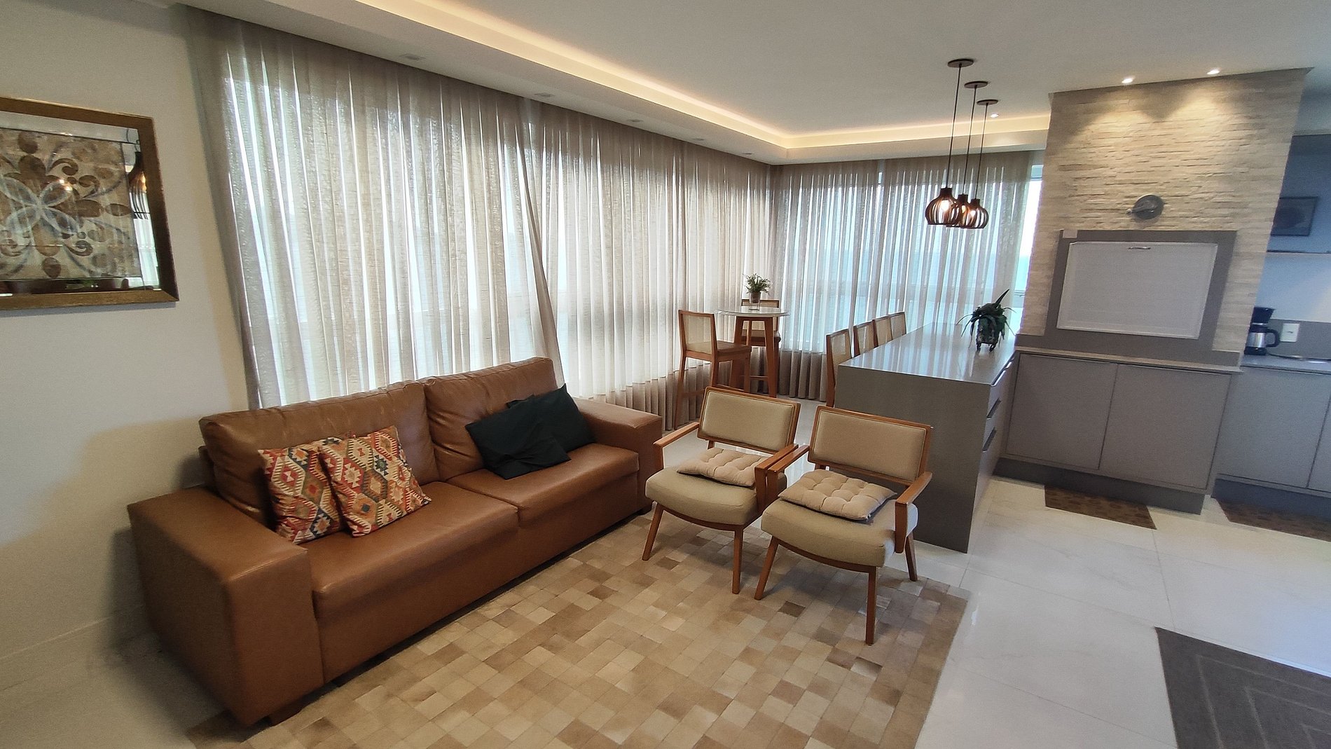 Área de estar com sofá/cadeira