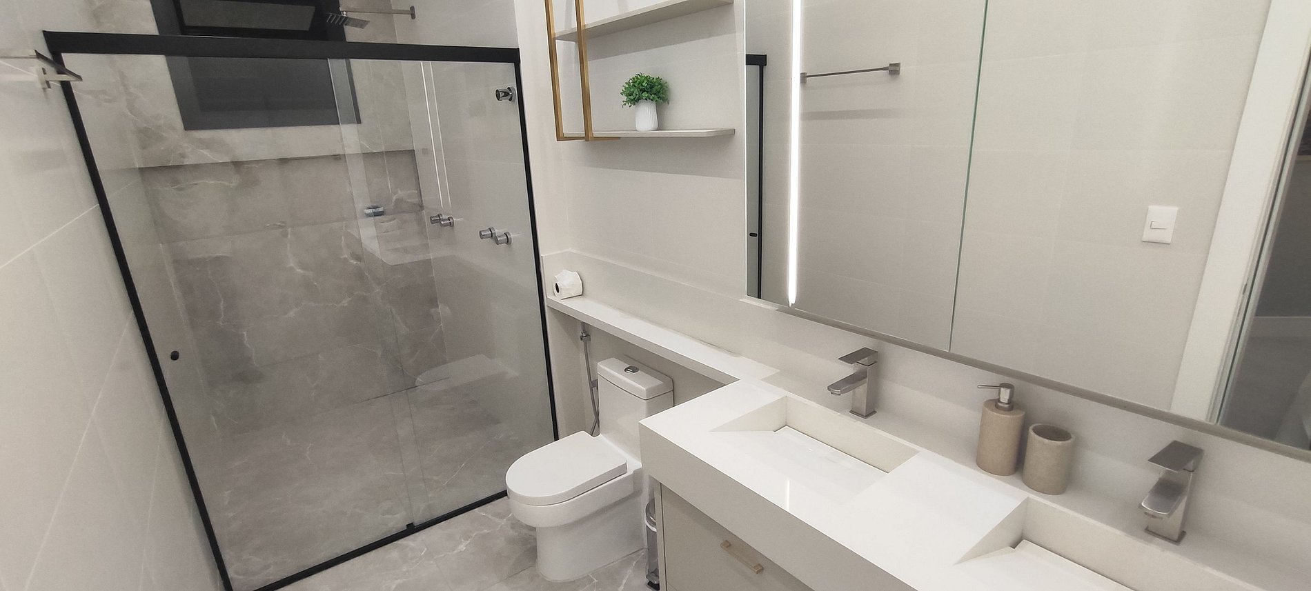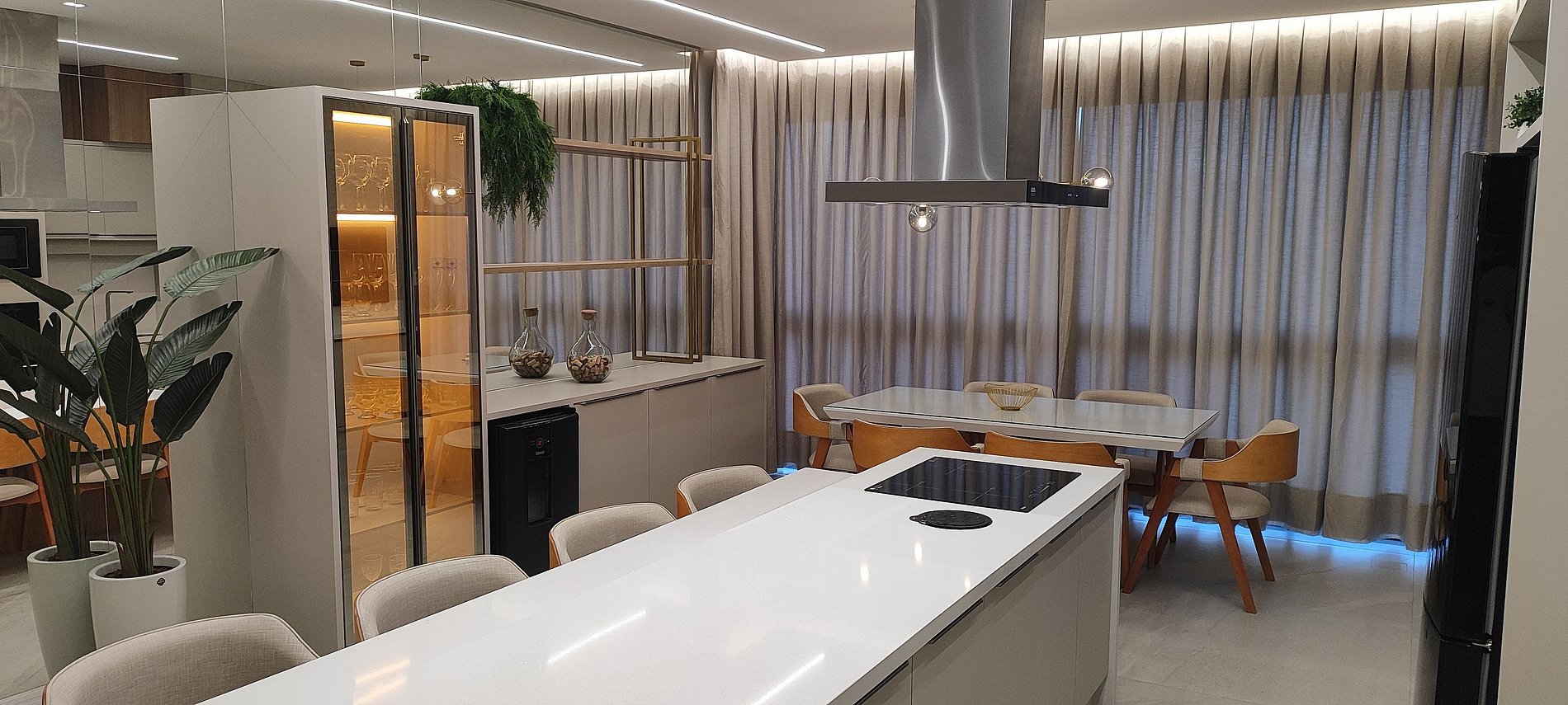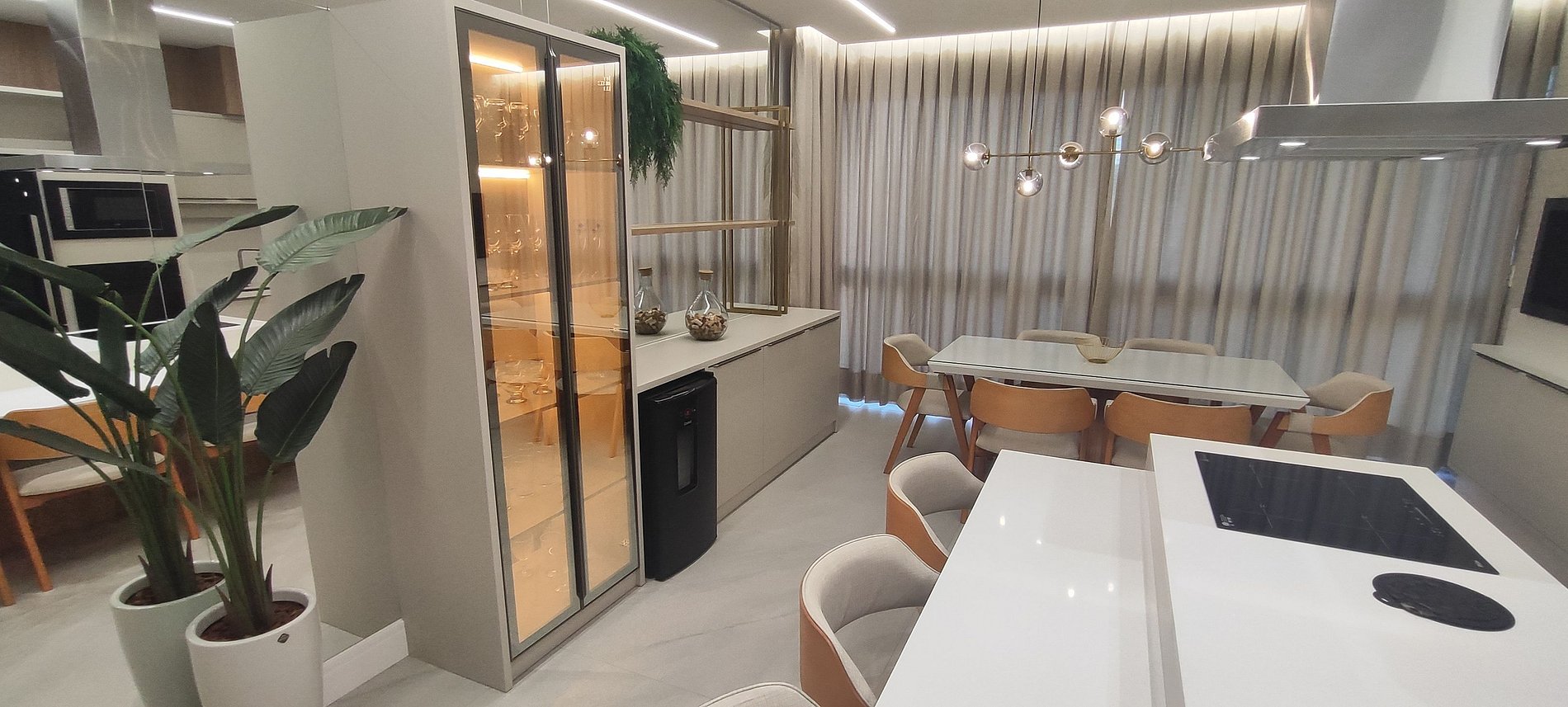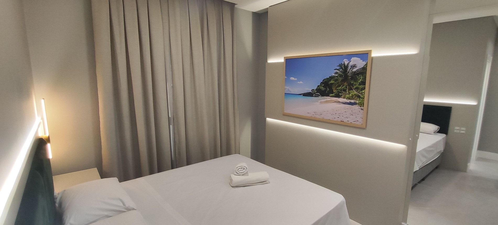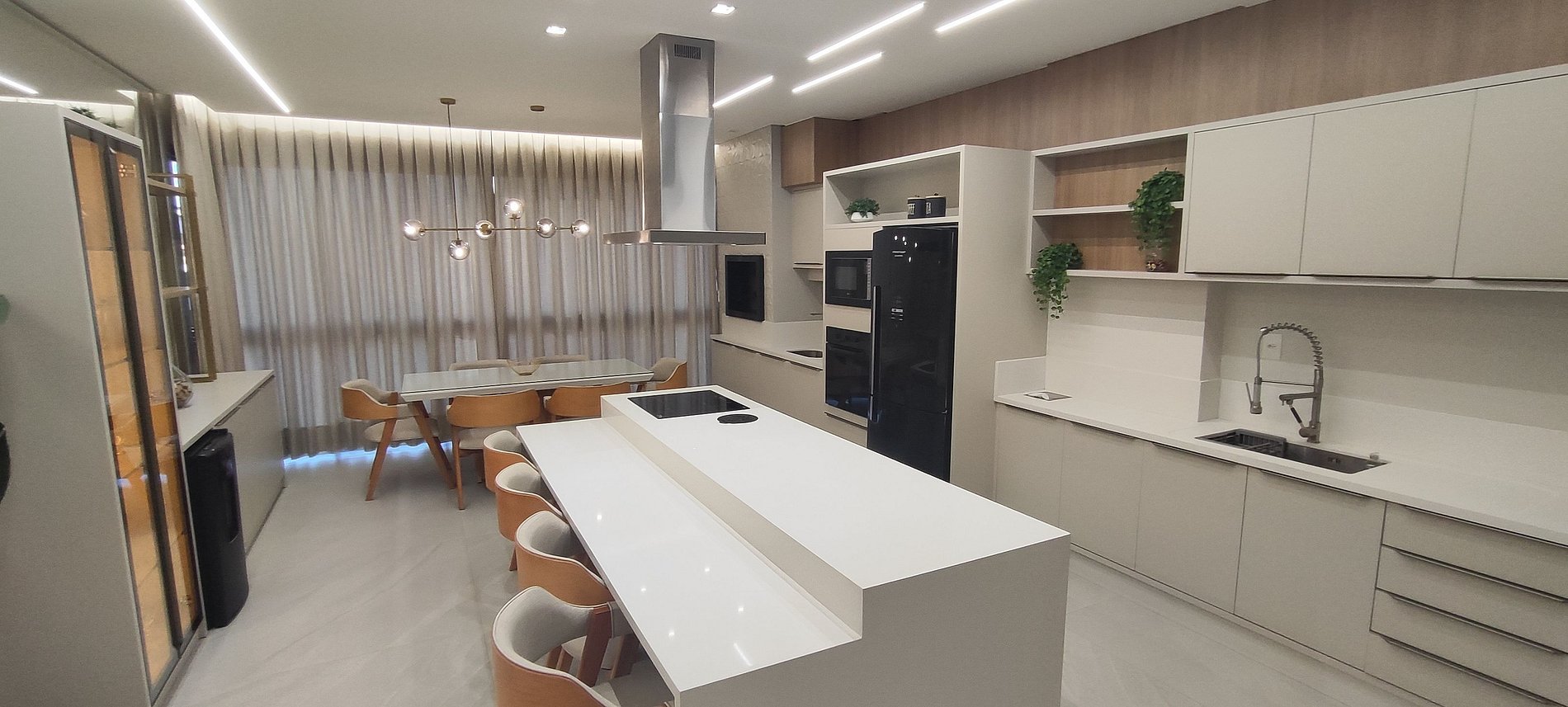 Espaço amplo e moderno, recém-entregue, com 168 m² privativos e 3 suítes queen, sendo a master com closet e espaço para trabalho. Sala de estar confortável com TV 65", cozinha gourmet integrada à sala de jantar, ilha para confraternizações e churrasqueira com vista para o mar. Decoração impecável, enxoval completo, camas montadas, papel, sabonete, shampoo da Amazônia, detergente, bucha e água de boas-vindas. Ambiente climatizado, ideal para descanso, trabalho e confraternizações.