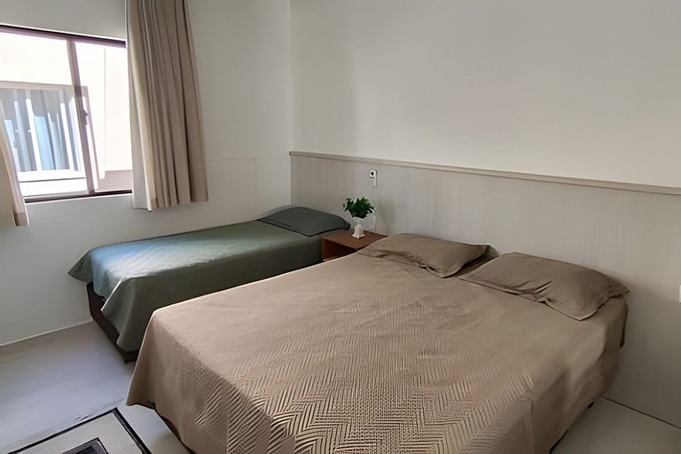 Tudo é perto: acesso direto à praia, ônibus regulares, variedade de Uber, rodoviária próxima e aeroporto em Navegantes, a apenas 50 km de Meia Praia. Mobilidade fácil para quem chega de carro, transporte público ou a pé.